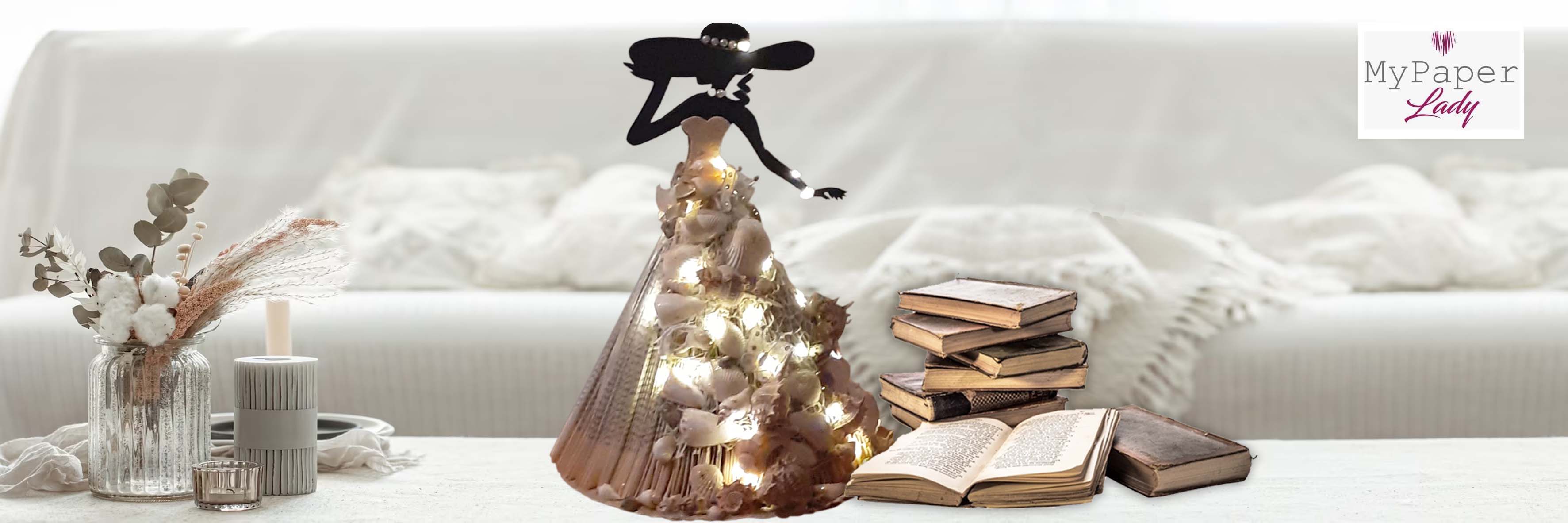 Un oggetto semplice, che racchiude in sé un mondo. Quello che c'è dentro le sue pagine è la storia di una vita, magari anche solo di un momento. Ogni libro ha una sua storia da raccontare, una propria essenza da custodire gelosamente. Quando finisce il suo tempo tra le mani dell'umanità, può essere gettato via senza pensarci due volte oppure può avere un'altra possibilità, grazie all'arte. Io ho deciso di dare nuova vita ai libri creandoci delle dame luminose.